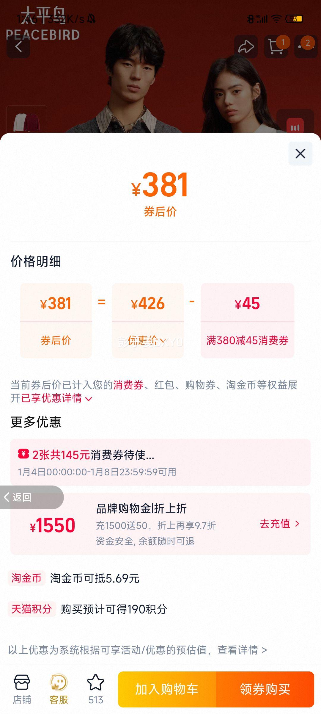 126.17元包邮+2590淘金币(需领券、需凑单)