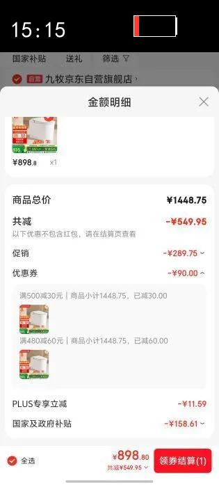 原价188.7元,领卷立减119.63,到手69.06元(需领劵)