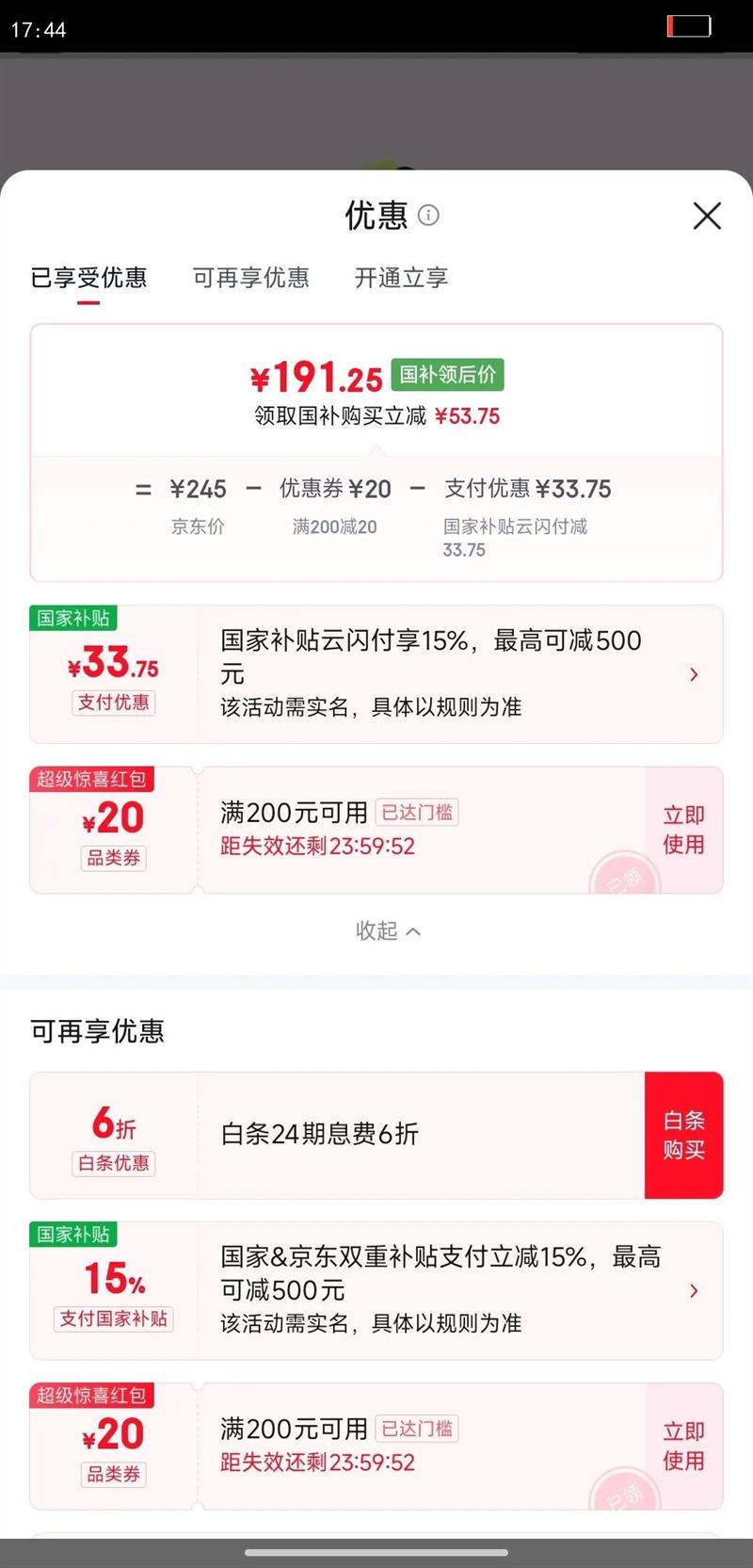 PLUS叠加优惠减234元,到手134元(需领卷)