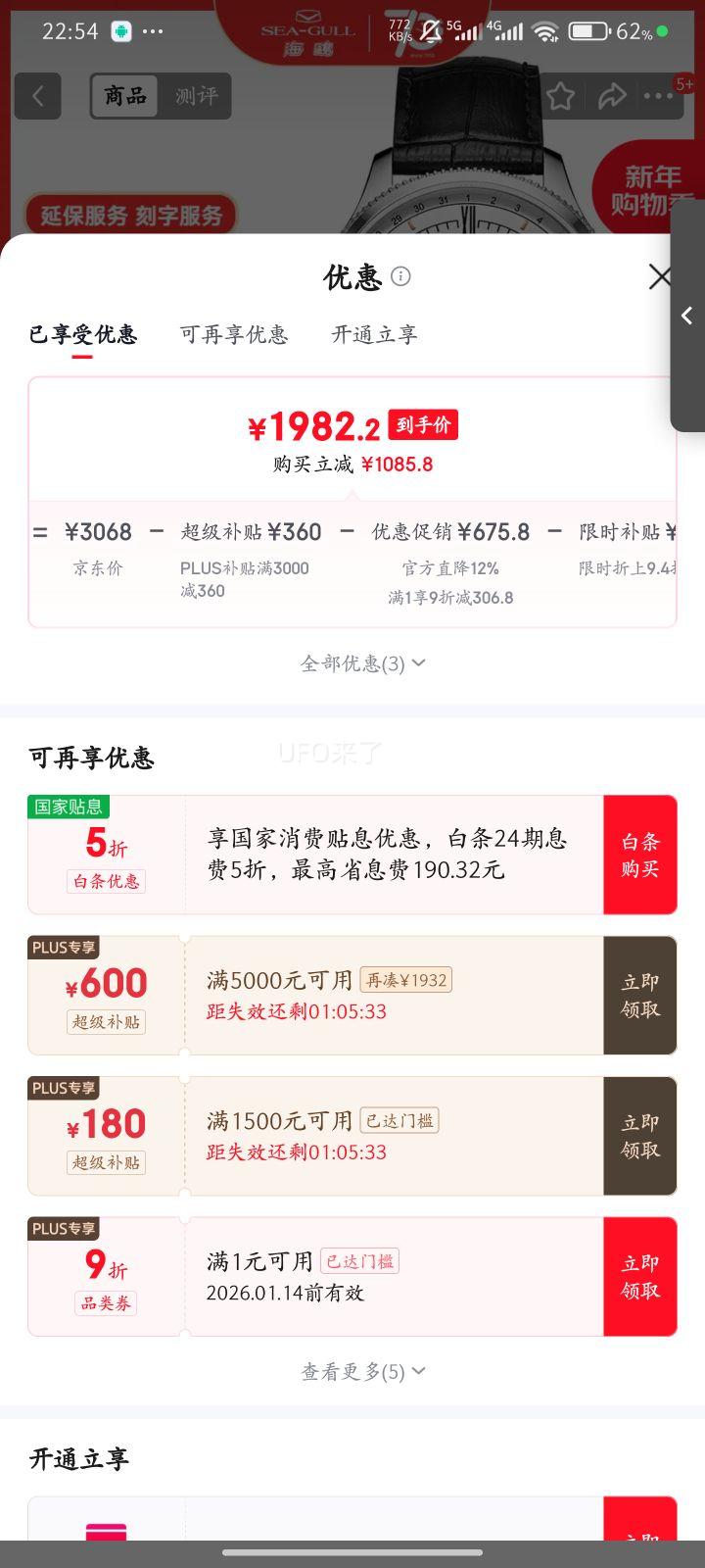 PLUS叠加优惠减234元,到手134元(需领卷)