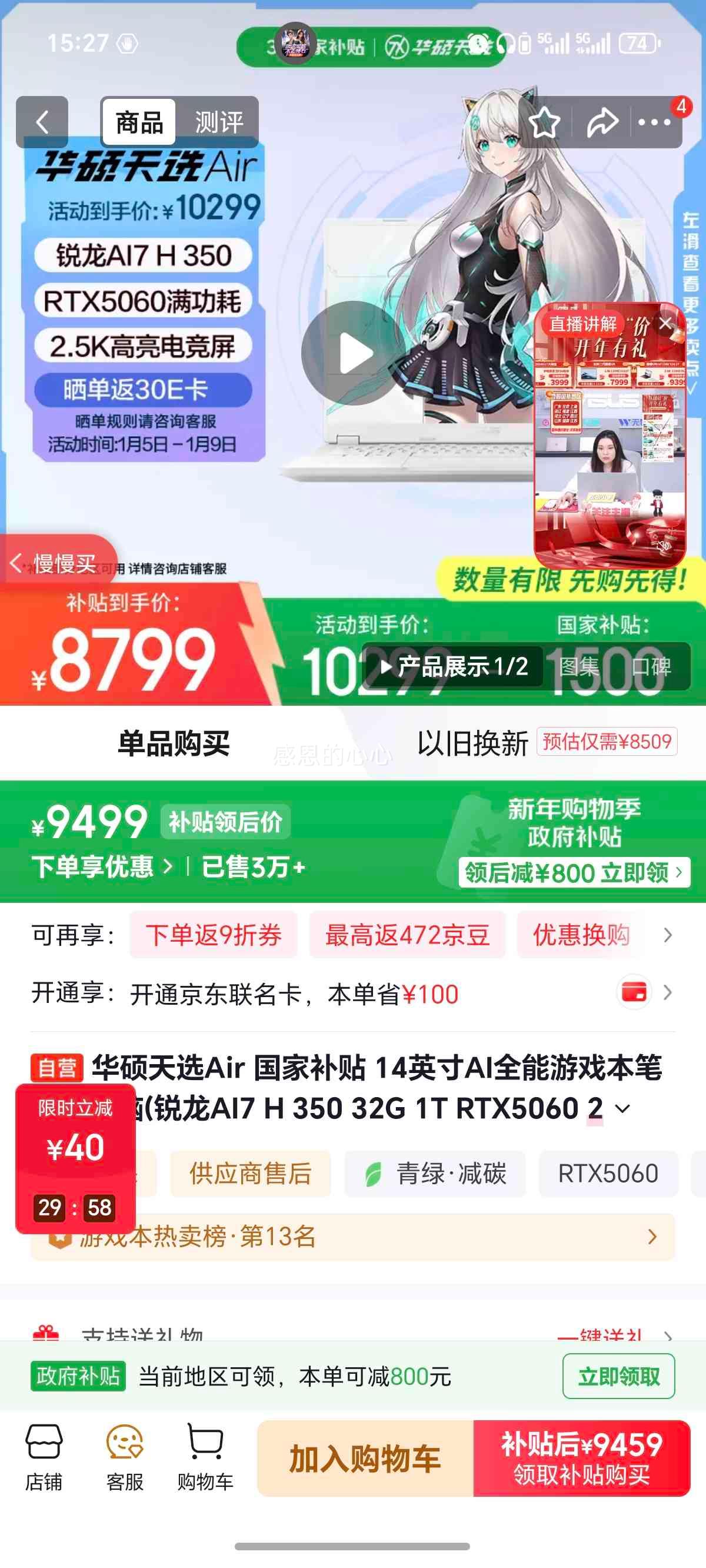 2197.28元(含国补、需领券、淘金币)