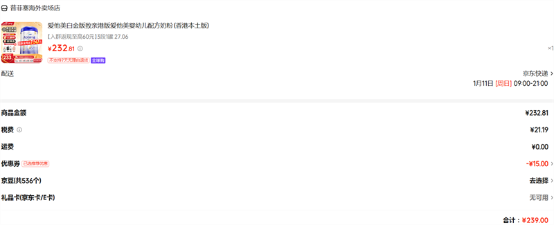 PLUS叠加优惠减234元,到手134元(需领卷)