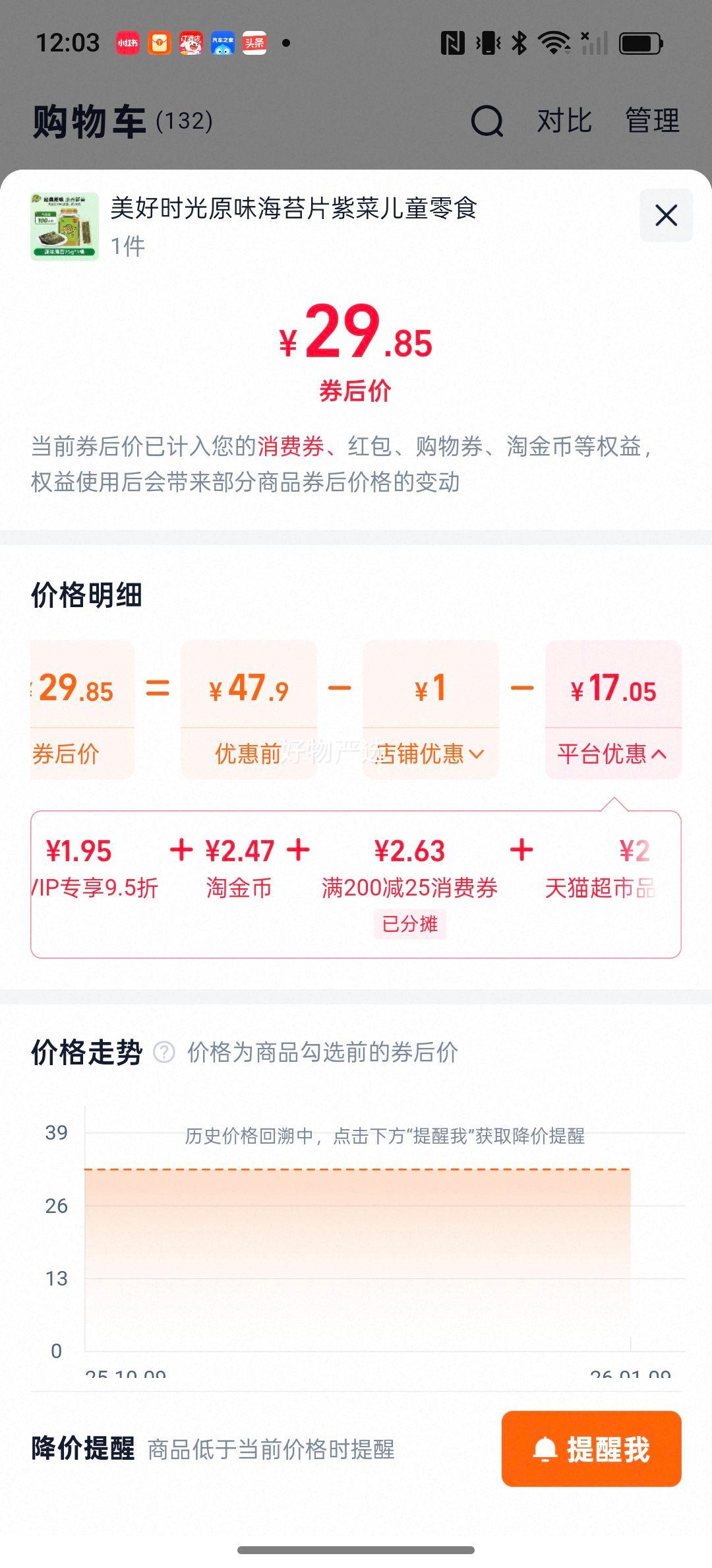 商品到手价29.85元(需领券),根据小编提供的优惠信息(优惠券+满1.01减1),下单1件。好价不错过,感兴趣的慢友可以试试!