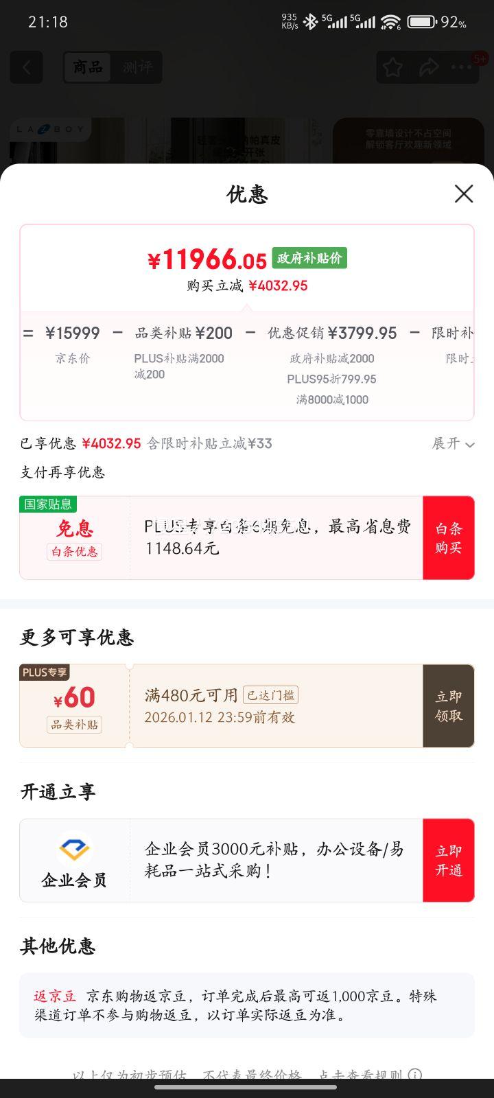 PLUS叠加优惠减234元,到手134元(需领卷)