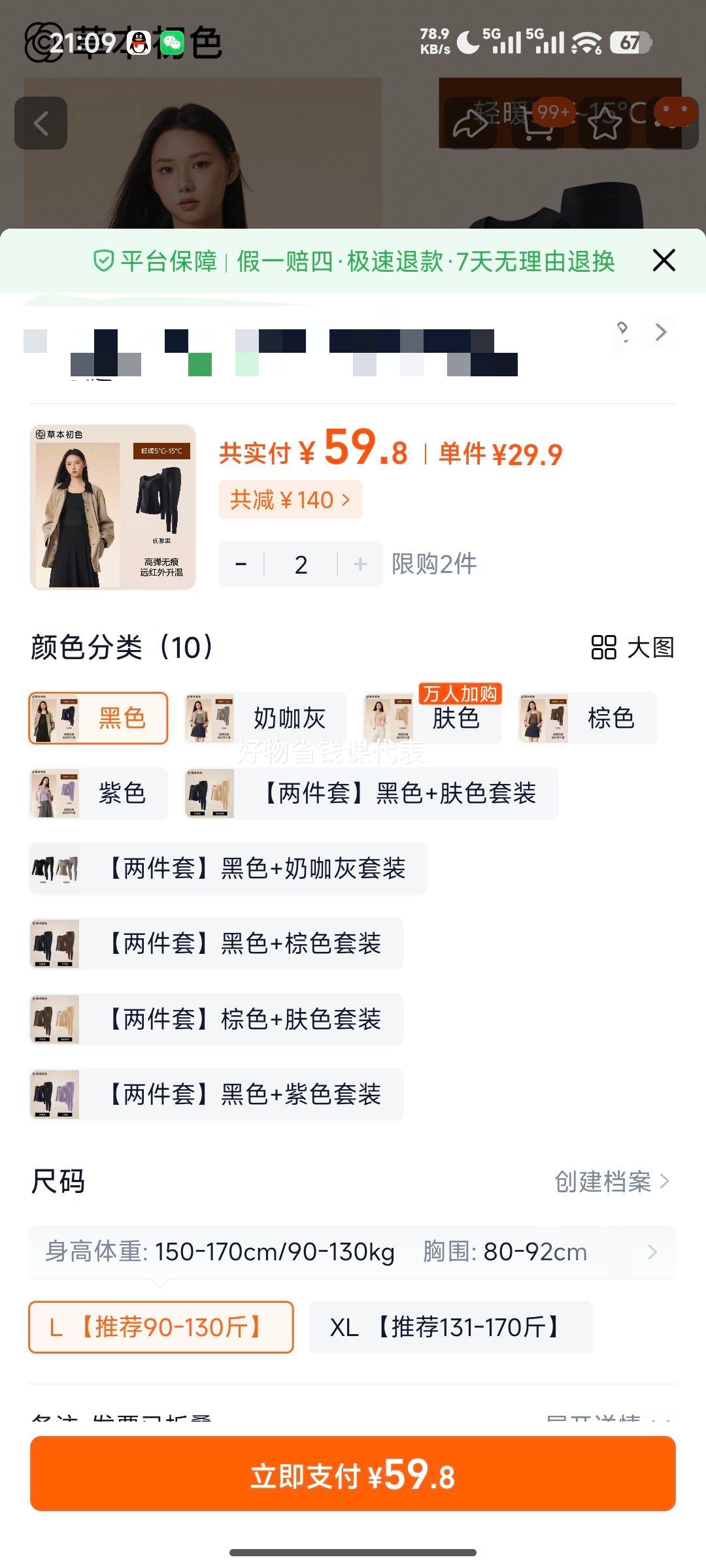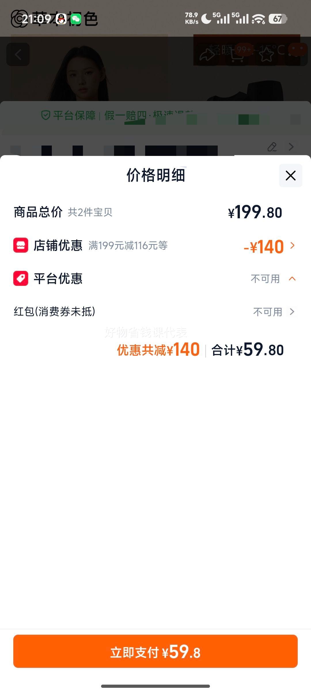 商品到手价59.8元(需领券,合29.90元/件),根据小编提供的优惠信息(优惠券+满199元减116元),下单2件。好价不错过,感兴趣的慢友可以试试!