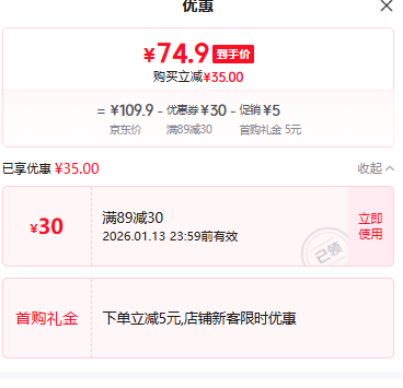 89元(需领券)