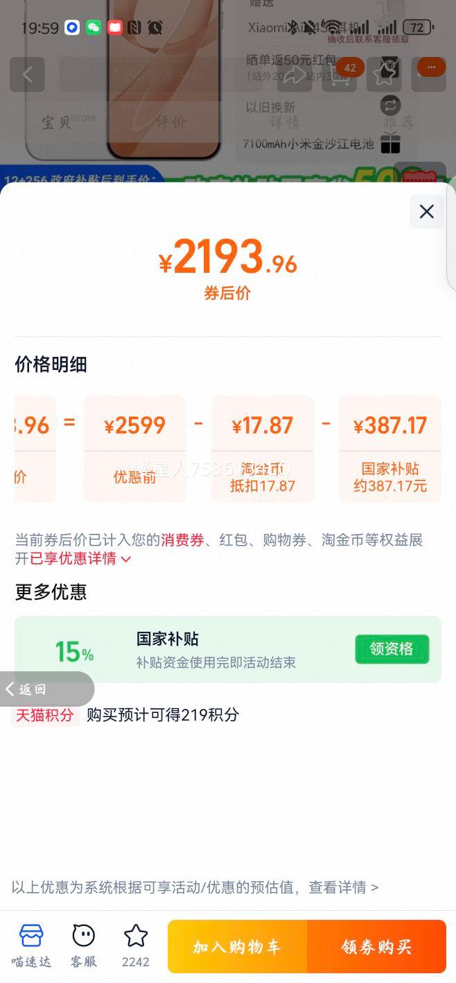 购买1件,到手价2193.96元(含国补等)