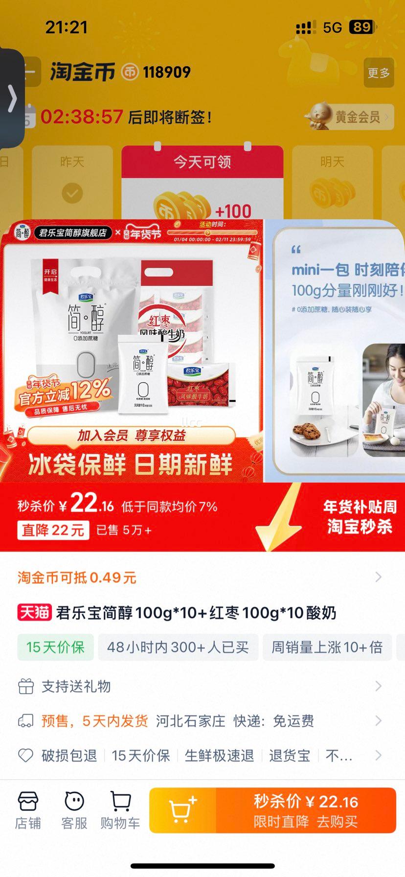 秒杀直降22元