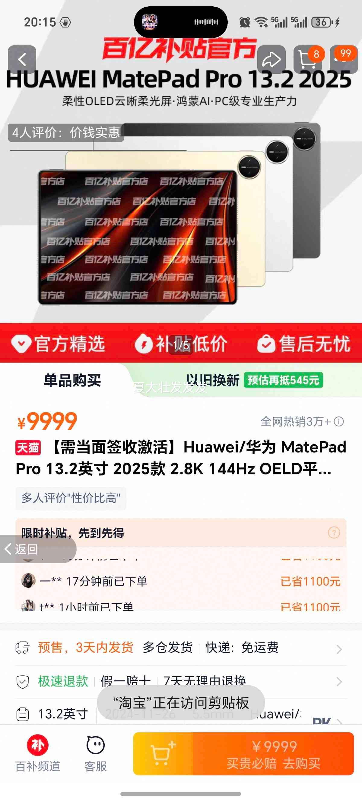 3687元(含国补、需领券)
