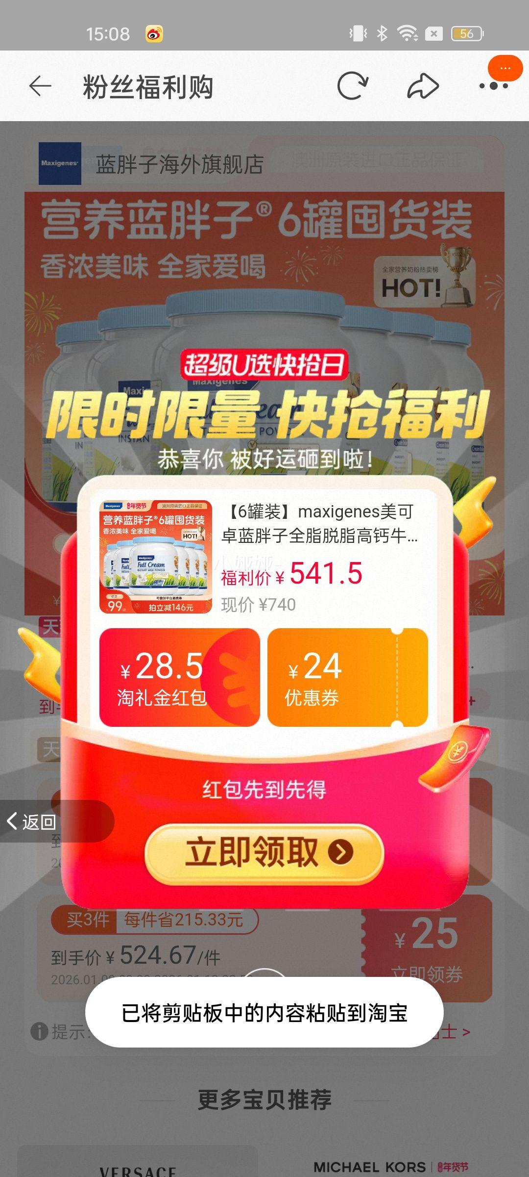 43.8元(需领券)+3元淘金币