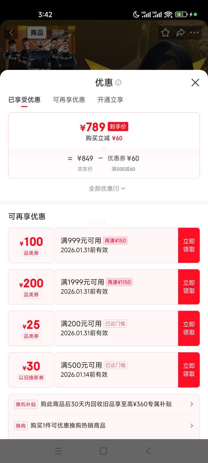 3687元(含国补、需领券)