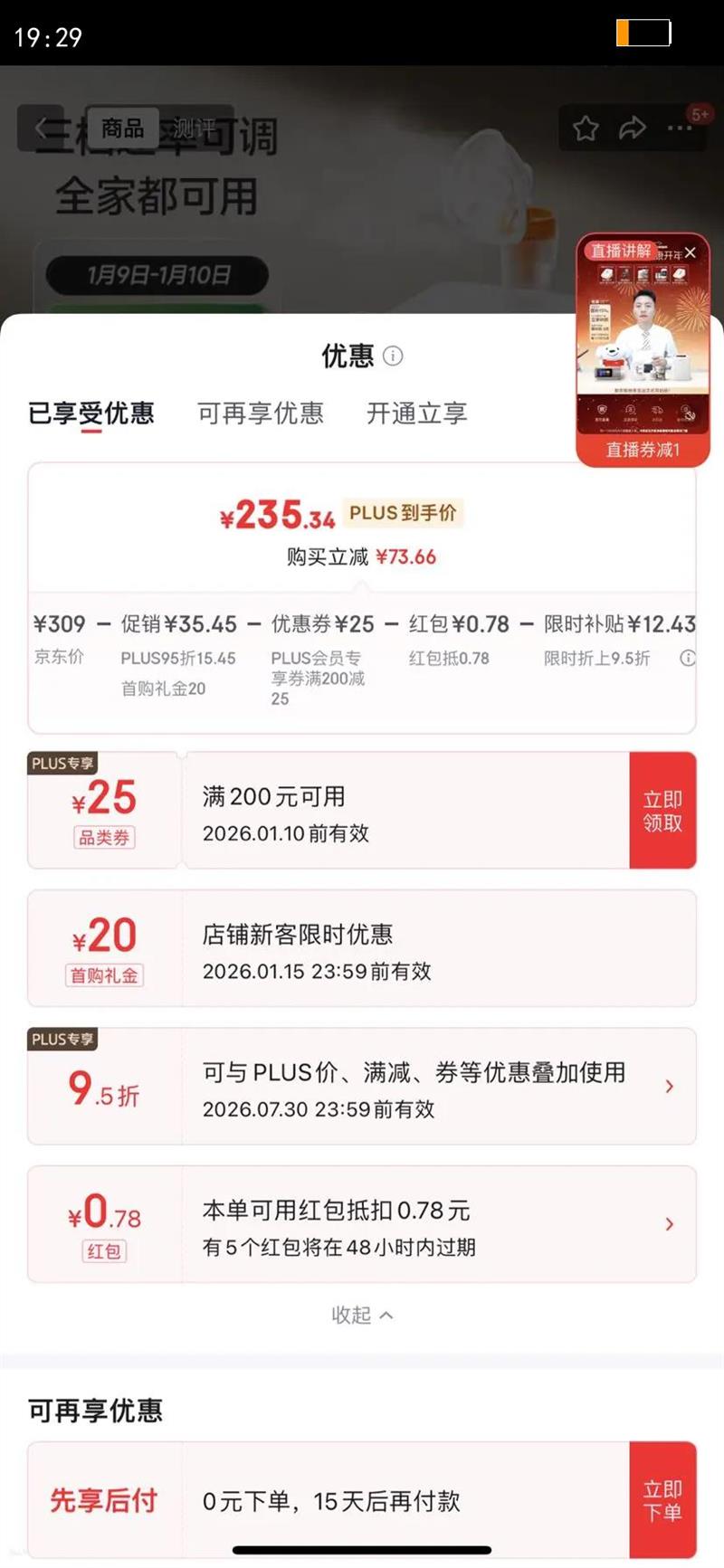 Plus补贴满200减25