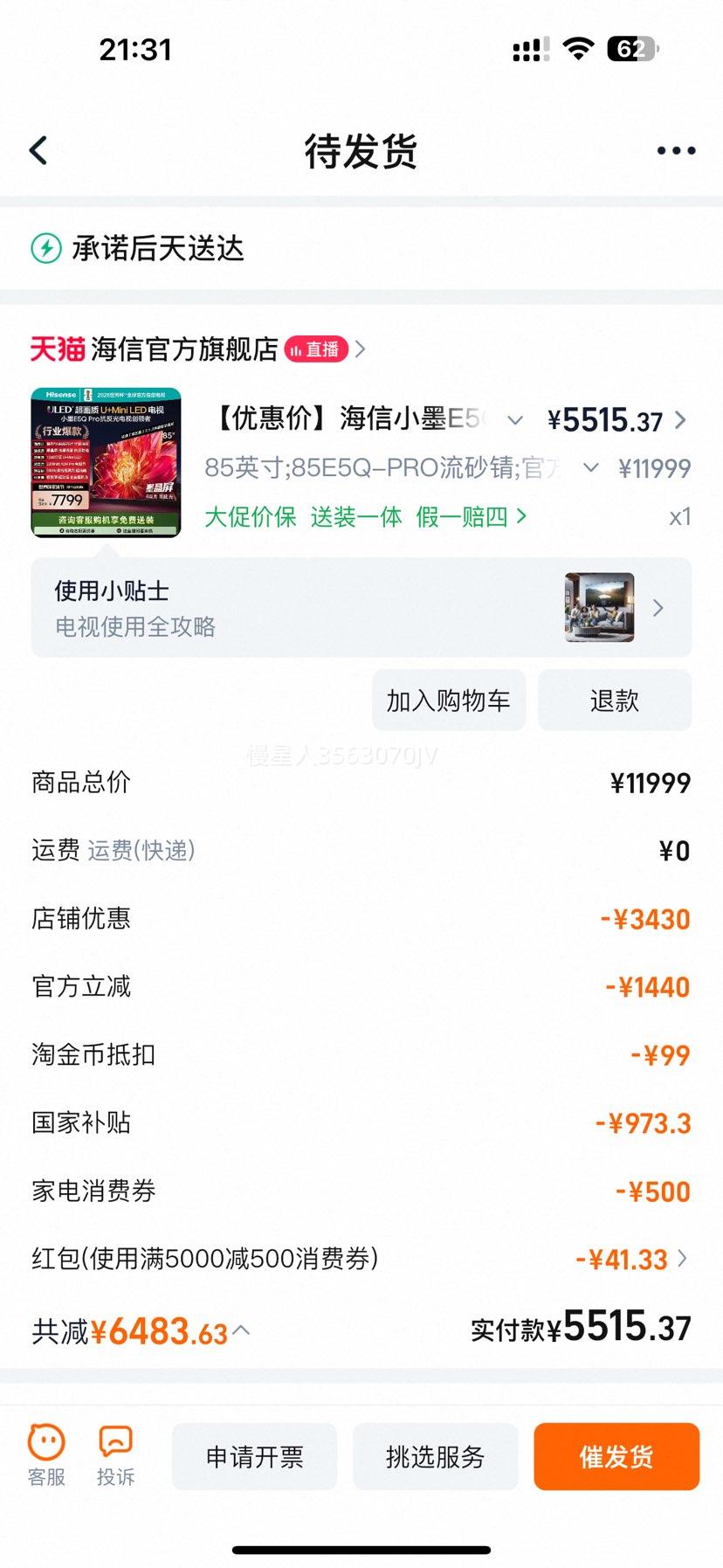 3687元(含国补、需领券)