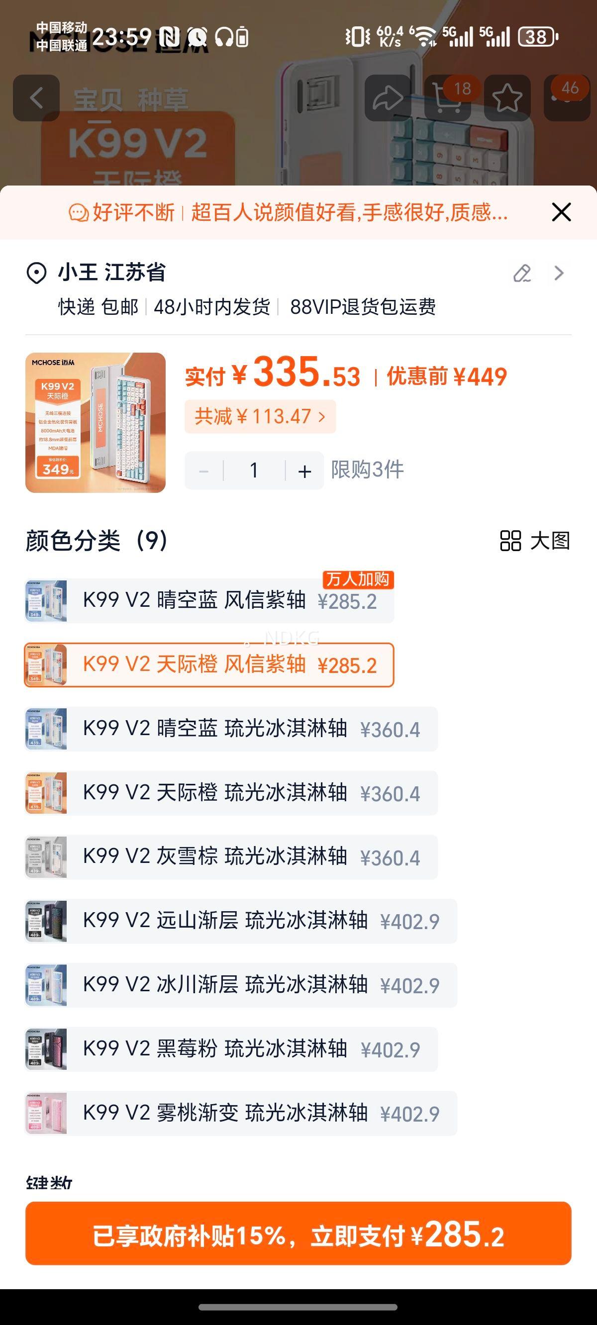 3687元(含国补、需领券)
