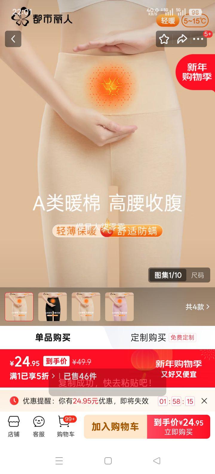 都市丽人 纯棉秋裤 女士保暖裤 麦麸色 M (建议90-100斤)24.95元(需领券)