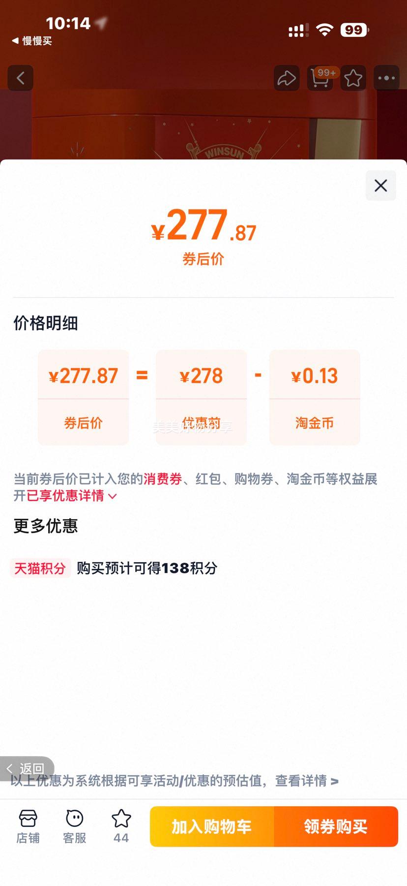 138元(需领券)