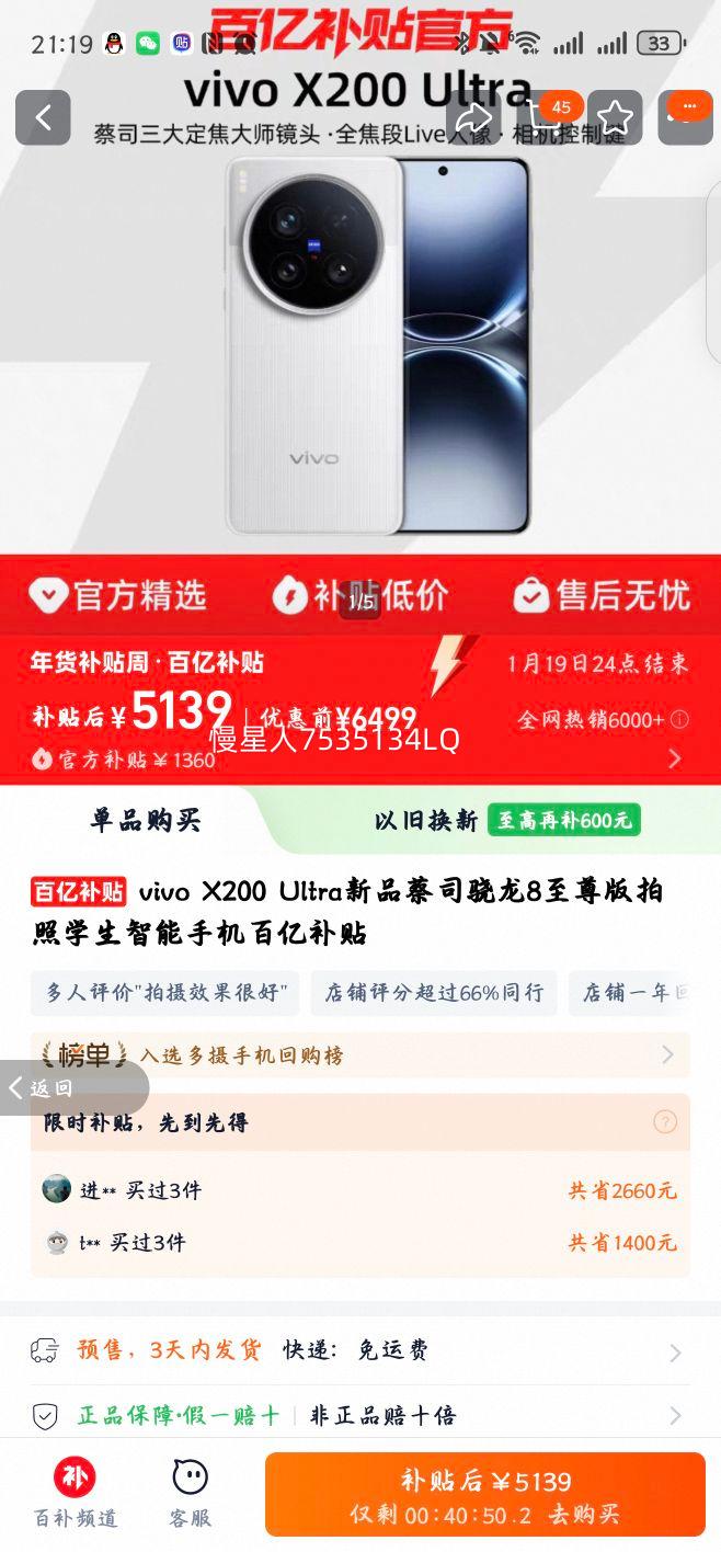 百亿补贴价格5139元