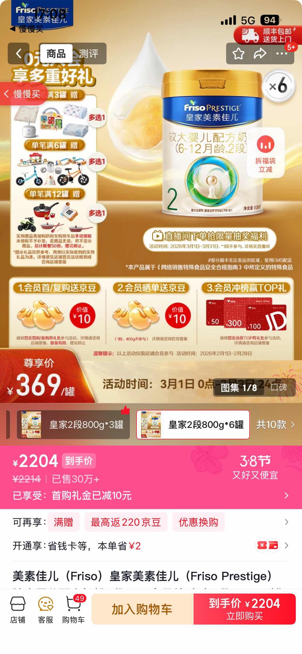 商品到手价2204元,下单1件。好价不错过,感兴趣的慢友可以试试!
