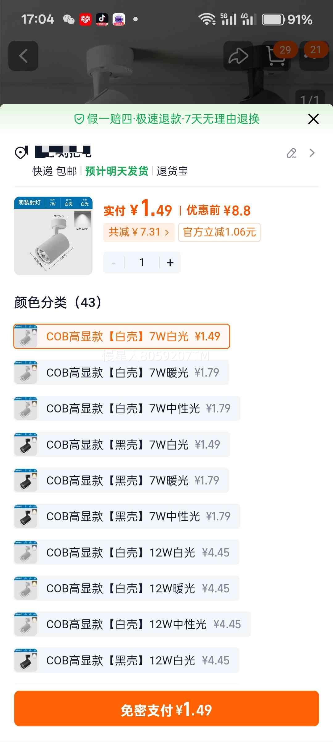 28.9元包邮+100淘金币