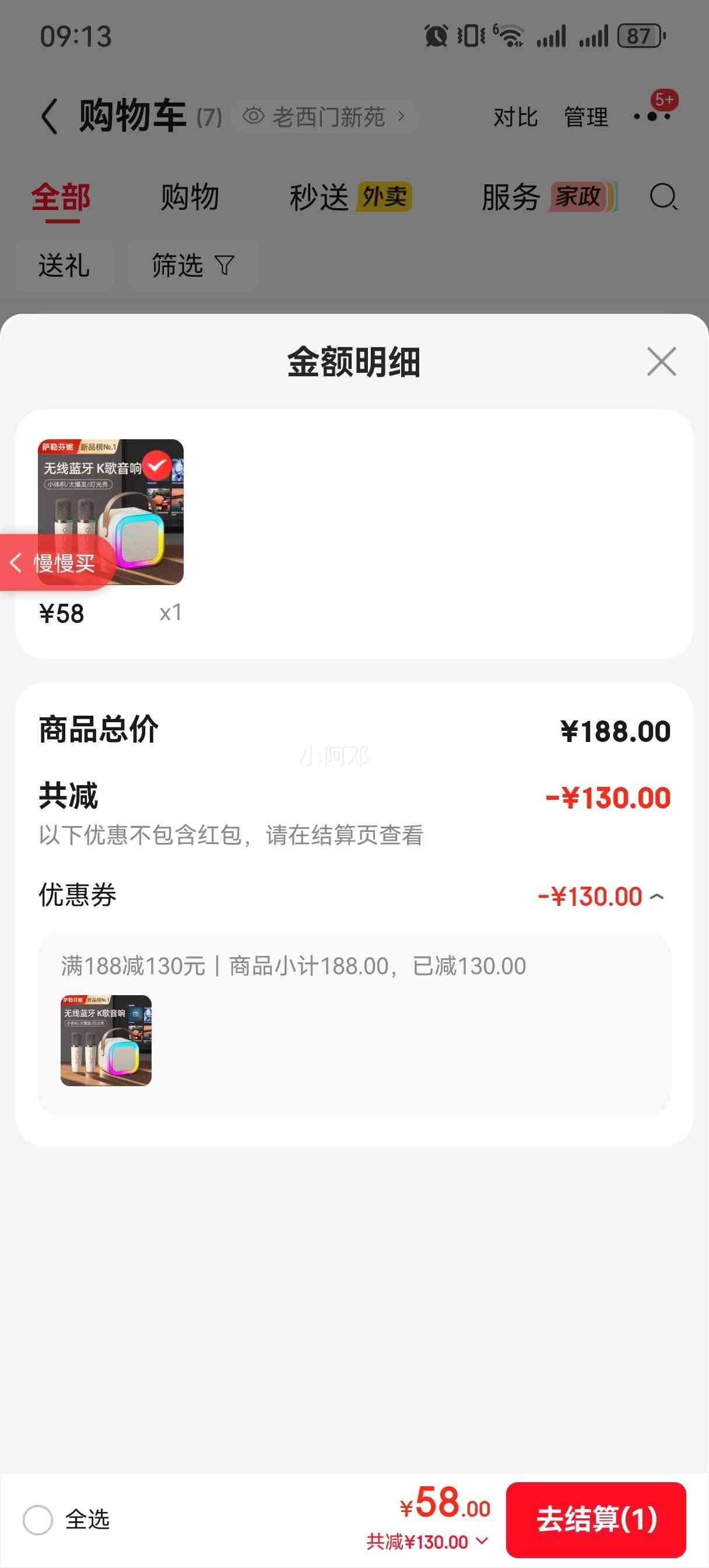 满188减130