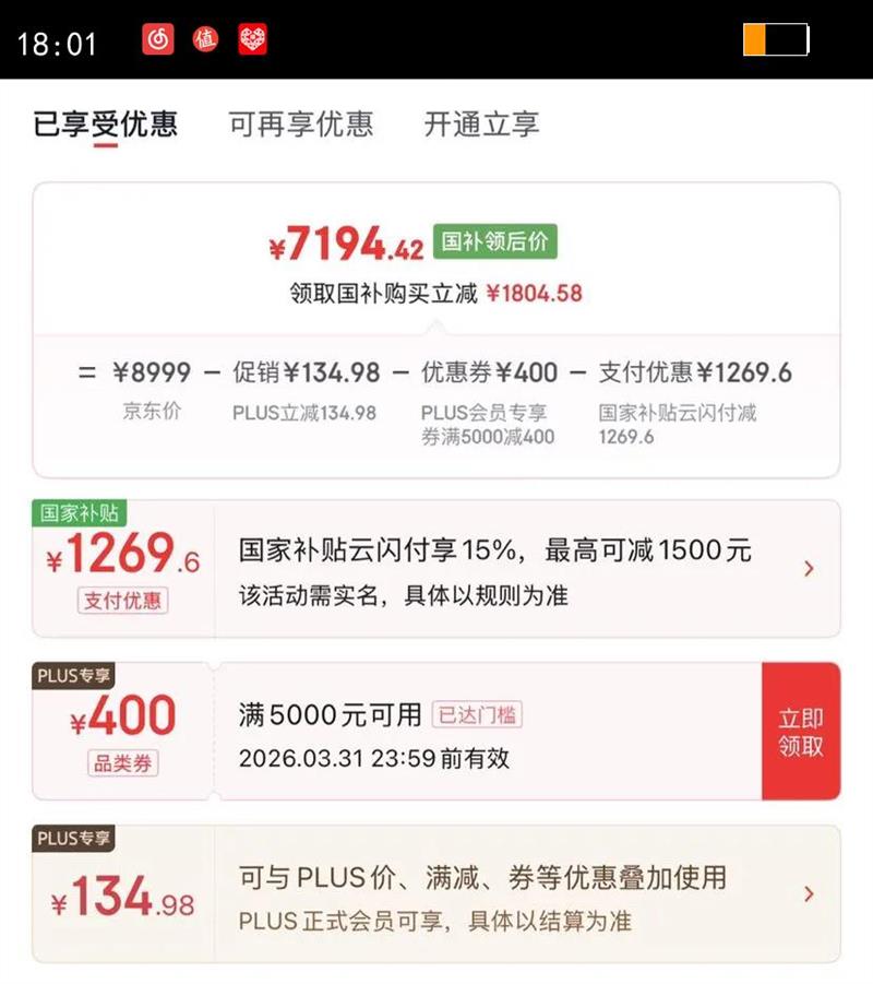 plus专享立减134.98
