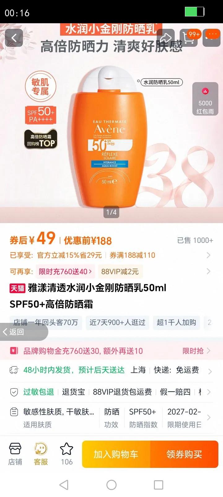 16.66元(叠加全能卡红包后14.66元)杭州、苏州可做到