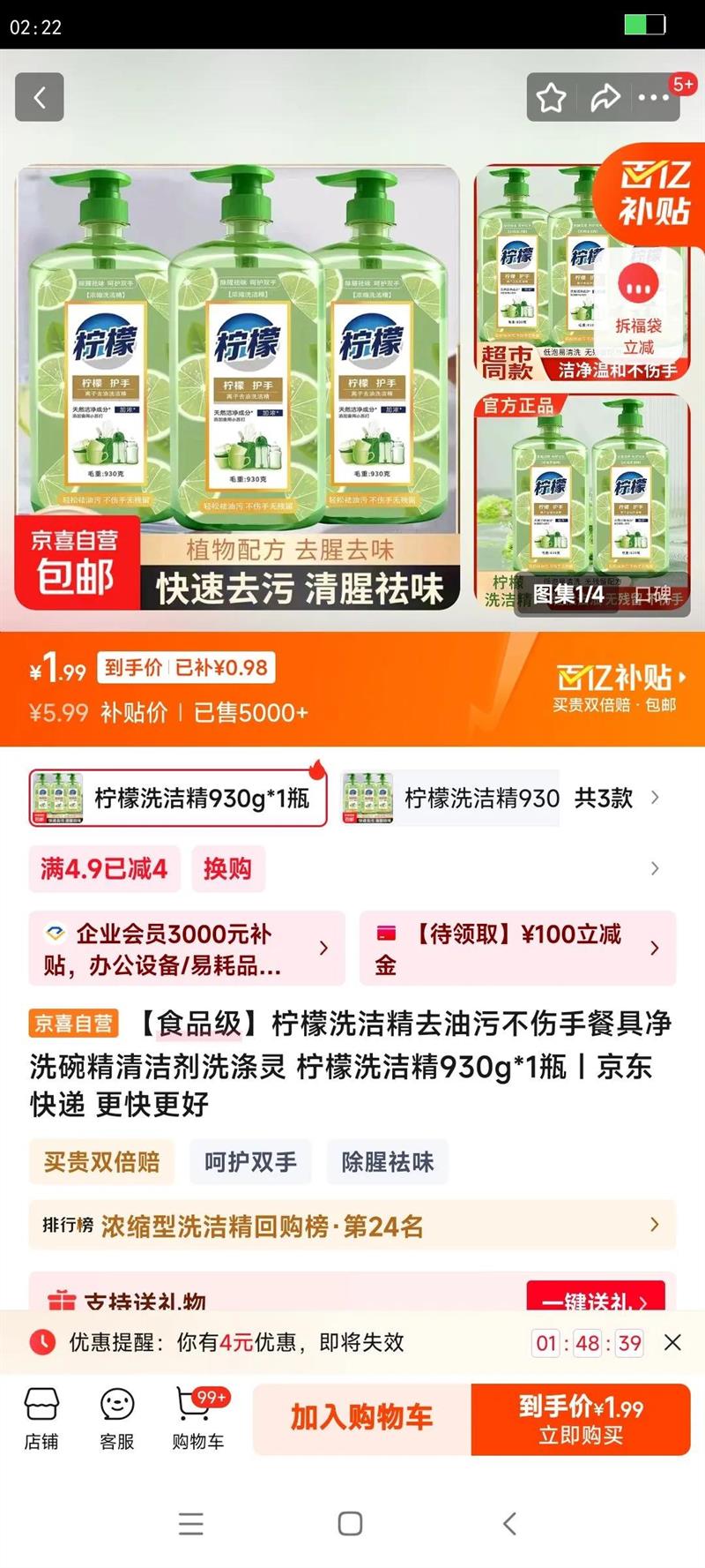 满4.9元减4元