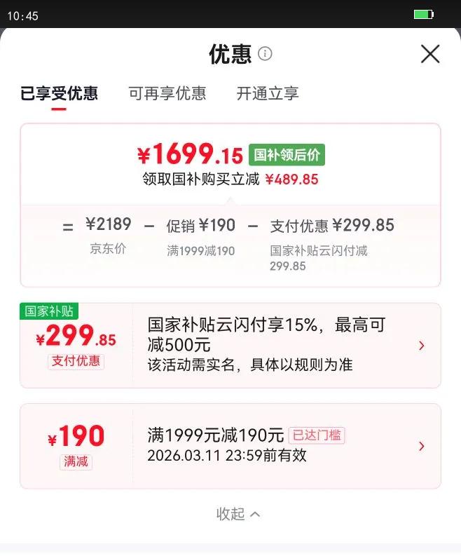 满1999元减190元