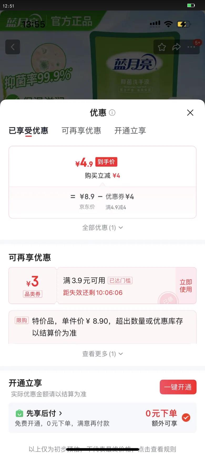 满4.9减4元
