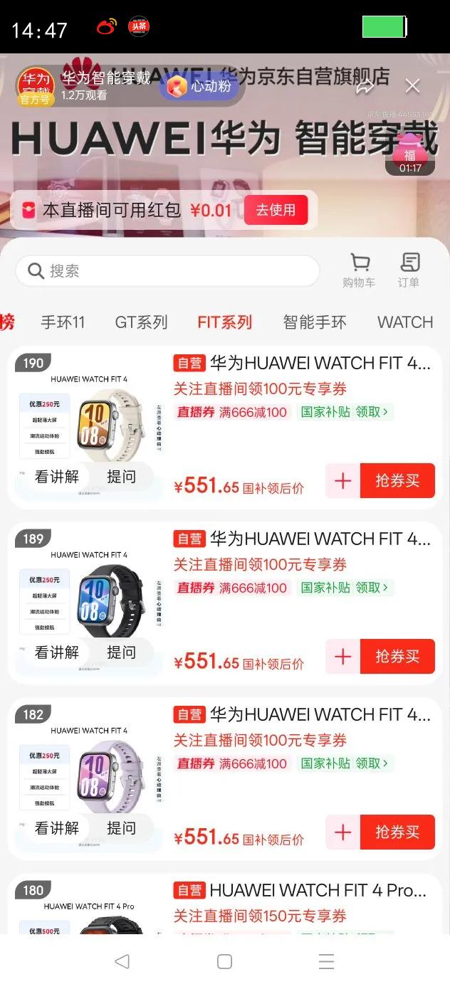 直播间下单:551.65