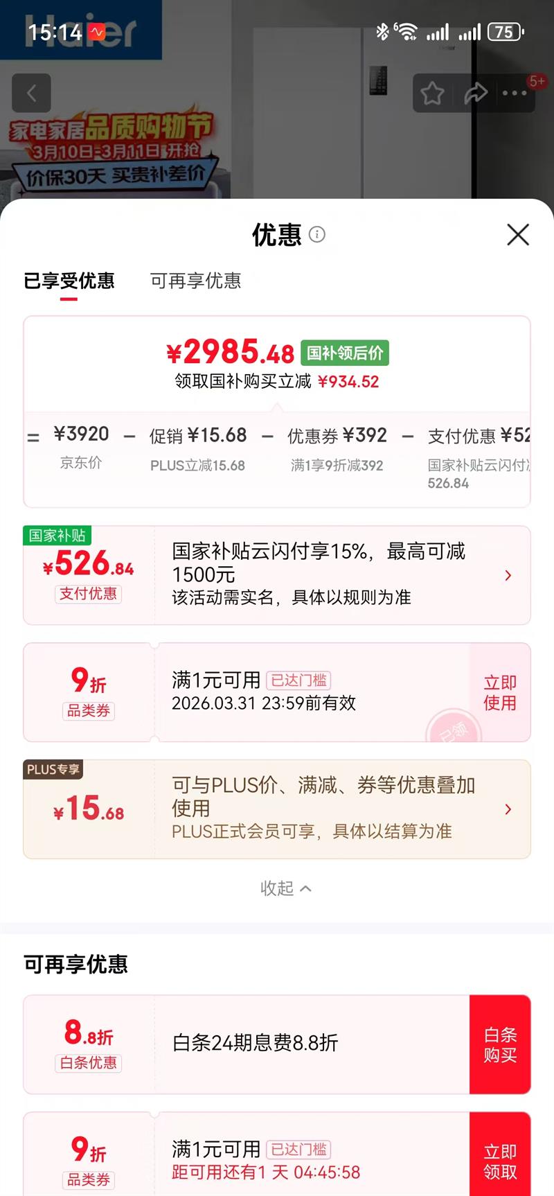 29.9元(合14.95元/次,需领券)