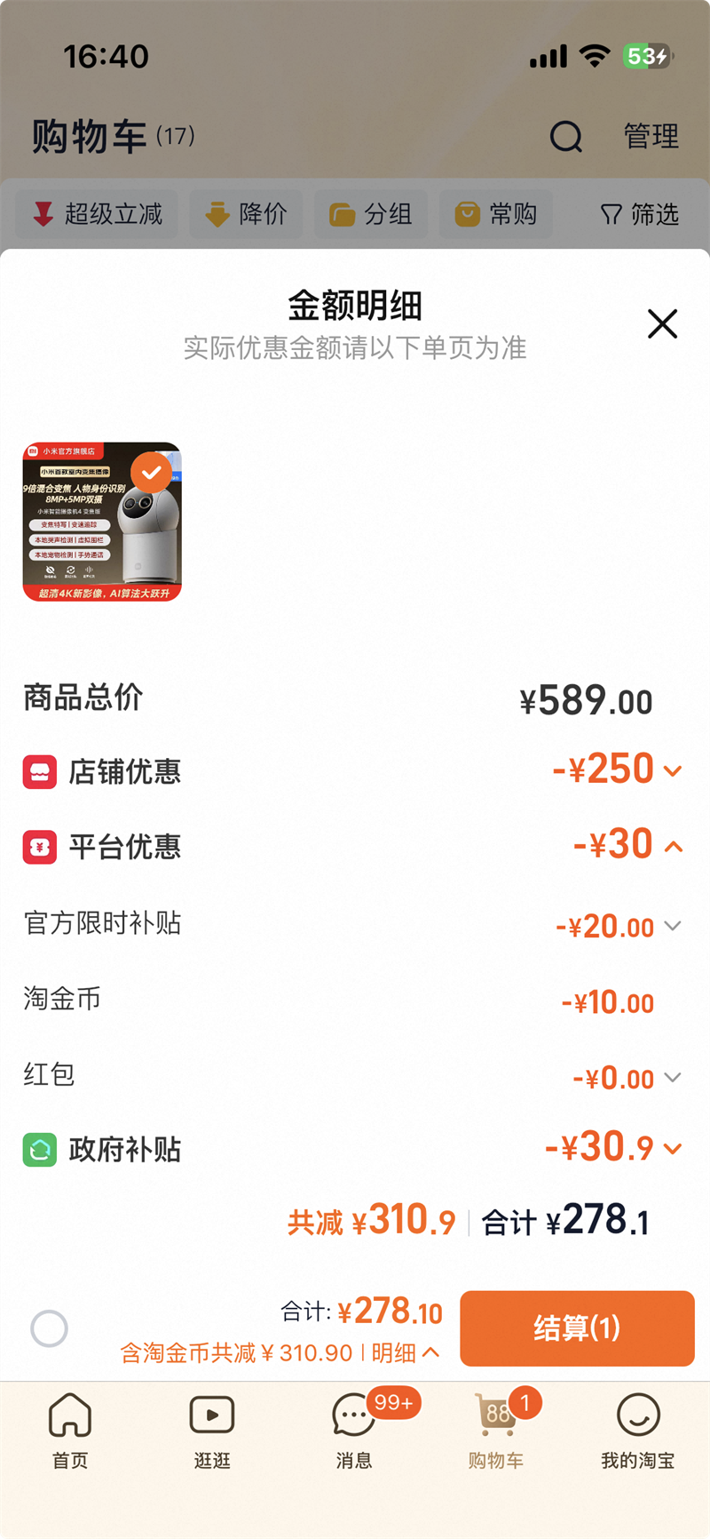政府补贴10%