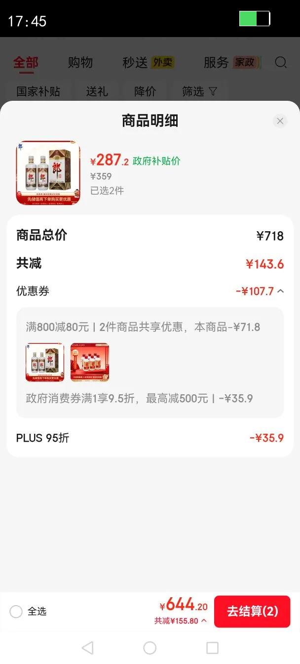 1件95折消费券