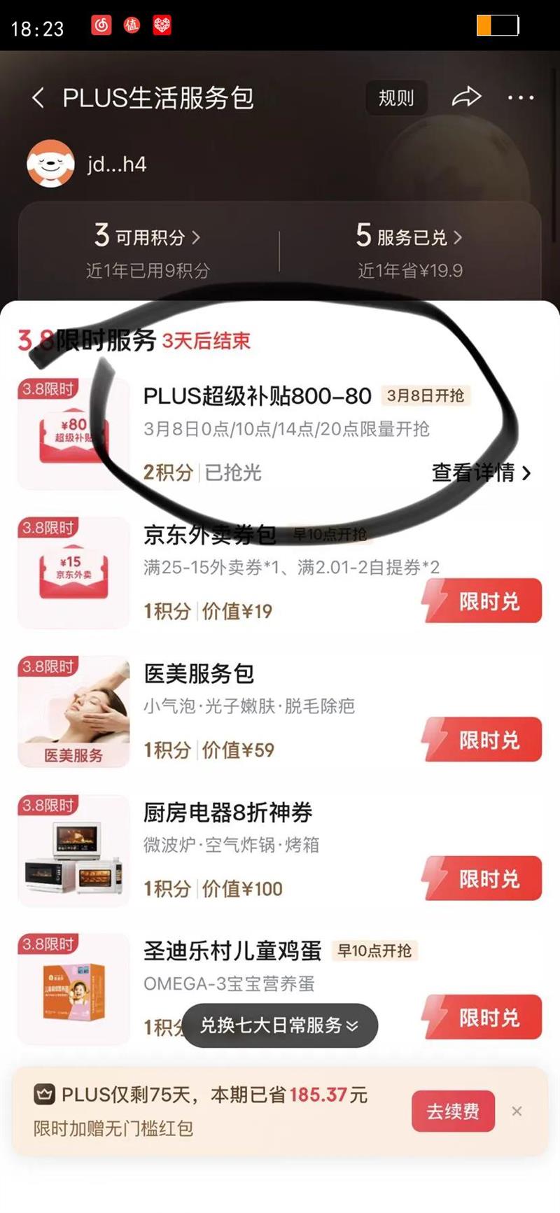 plus权益积分兑换满800元减80元