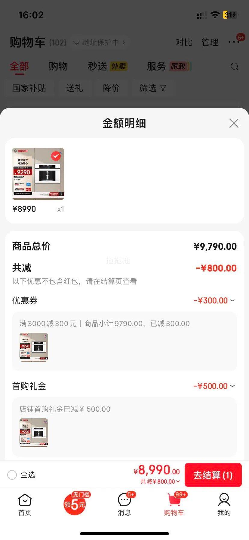 满3000元减300元