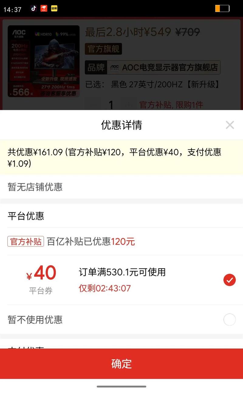 商品页面40元百亿补贴券