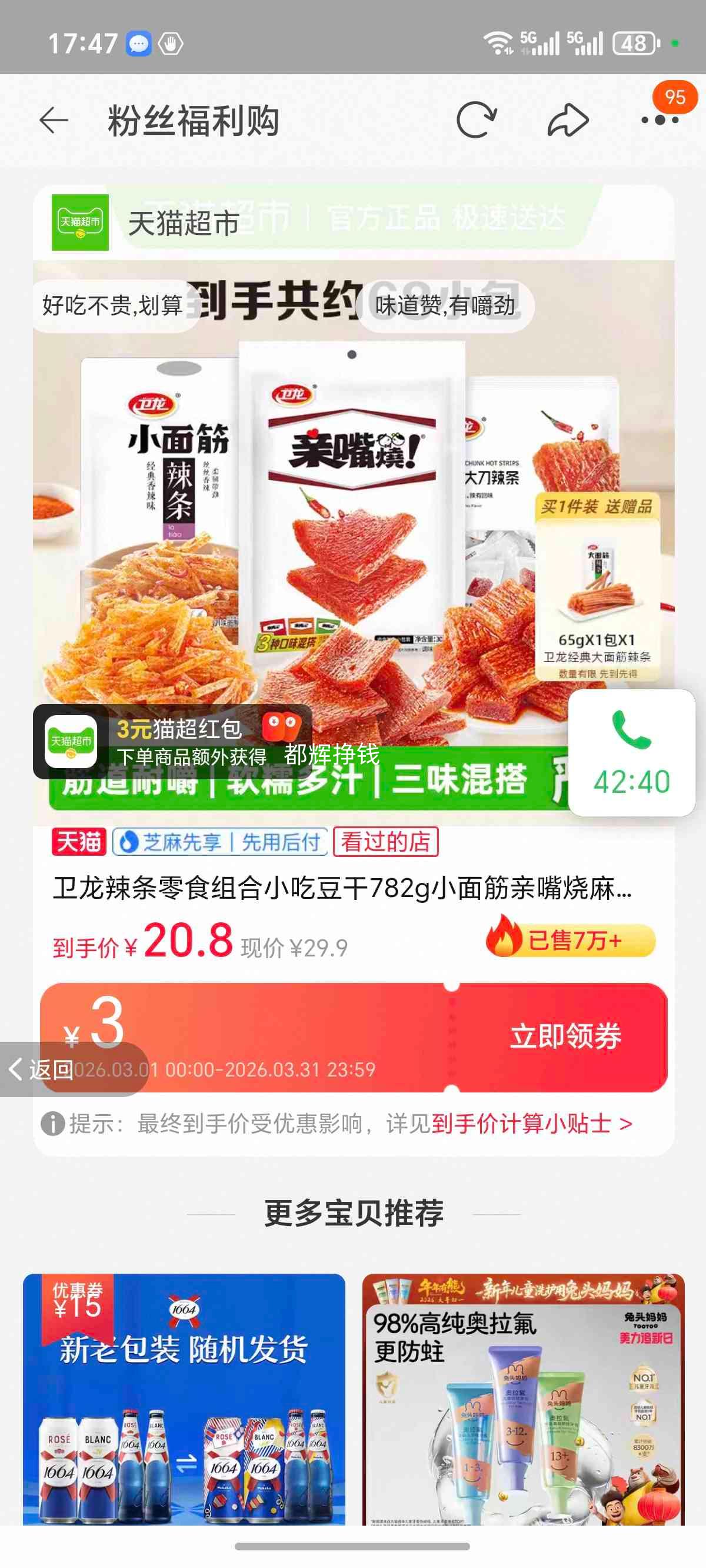 22.31元(叠加全能卡红包后20.31元)浙江、江苏、陕西等地区可做到,苏州低至17.56元