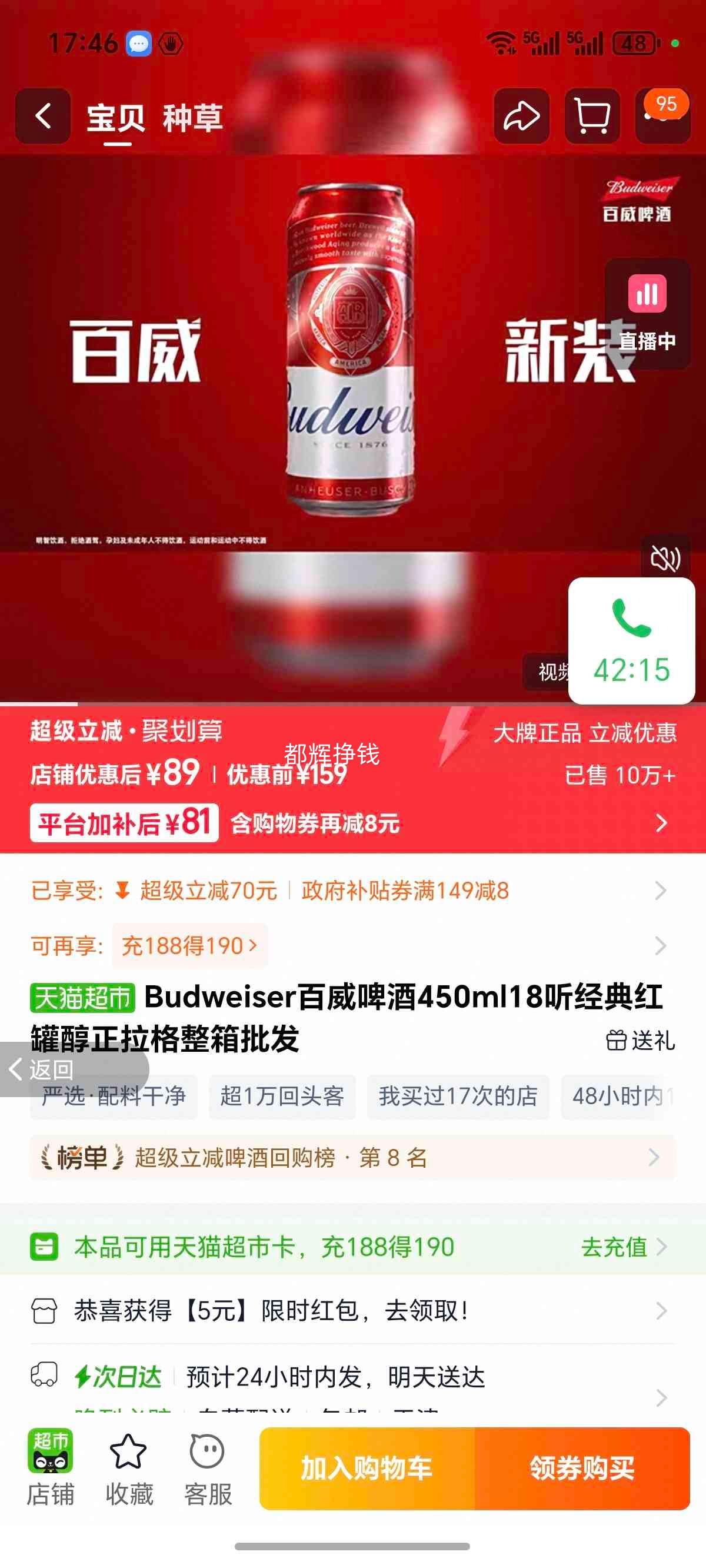 42.18元+9.24金币(返3元红包后39.18)