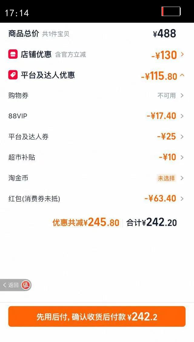 42.18元+9.24金币(返3元红包后39.18)