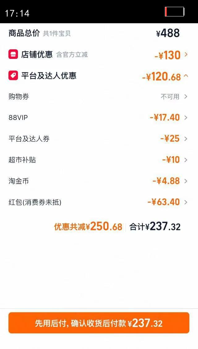 22.31元(叠加全能卡红包后20.31元)浙江、江苏、陕西等地区可做到,苏州低至17.56元