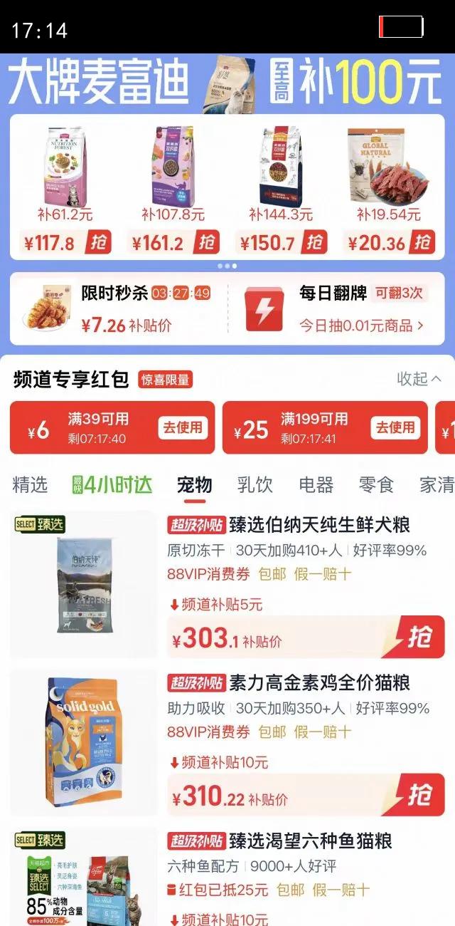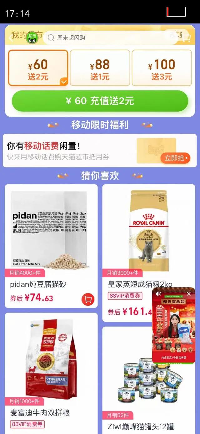 天猫超市萌宠园直播间9折券
