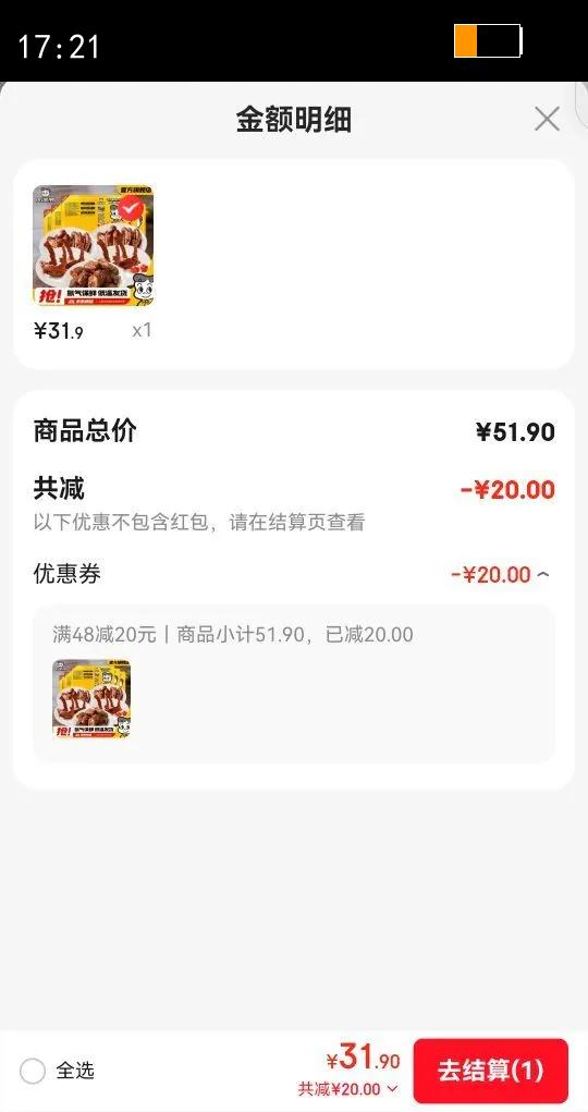 22.31元(叠加全能卡红包后20.31元)浙江、江苏、陕西等地区可做到,苏州低至17.56元
