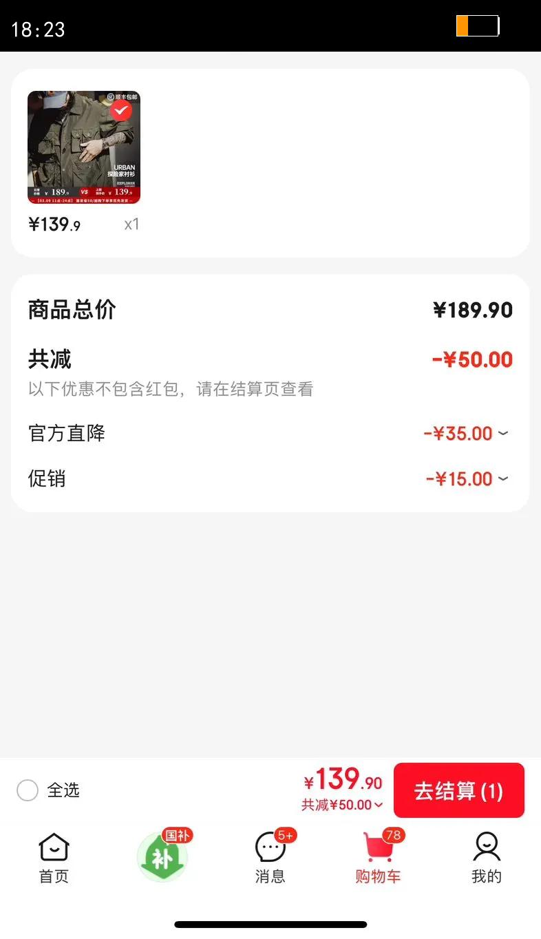 22.31元(叠加全能卡红包后20.31元)浙江、江苏、陕西等地区可做到,苏州低至17.56元