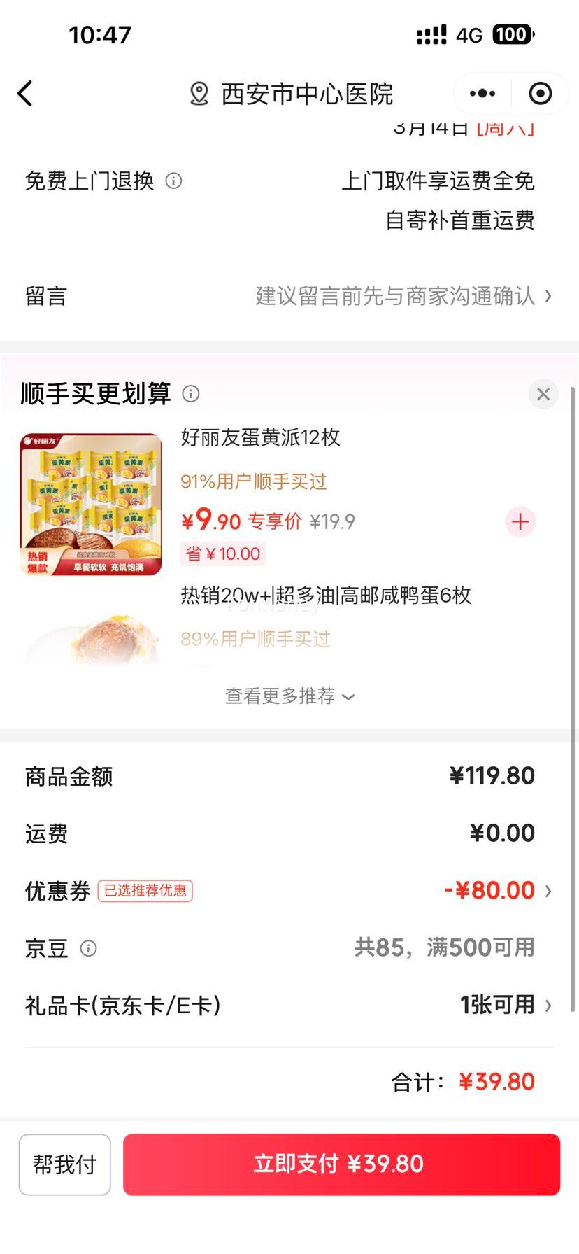 商品到手价39.8元,根据小编提供的优惠信息(满100元减80元),下单1件。好价不错过,感兴趣的慢友可以试试!