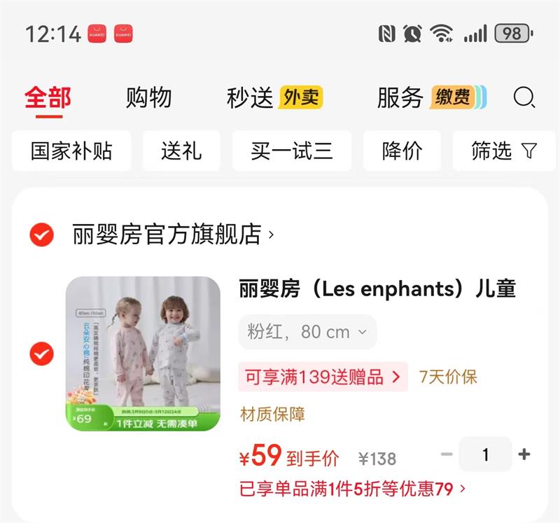 满1件,打5折