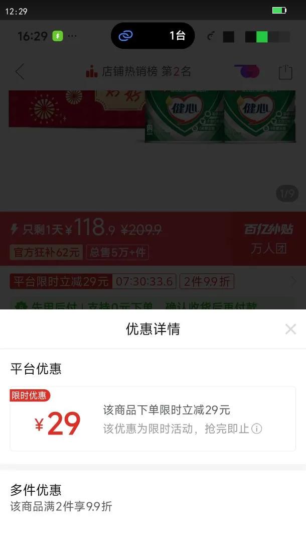 立减:29