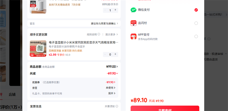 满1元,打9折