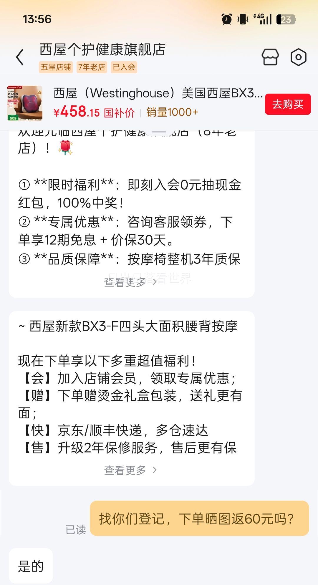 下单前咨询客服登记,到货晒图可返60元