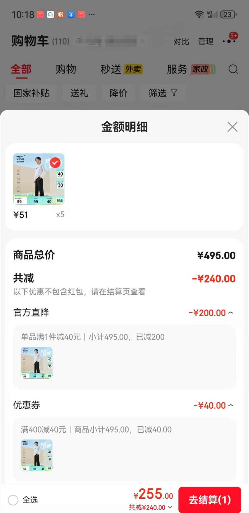 满1件减40元