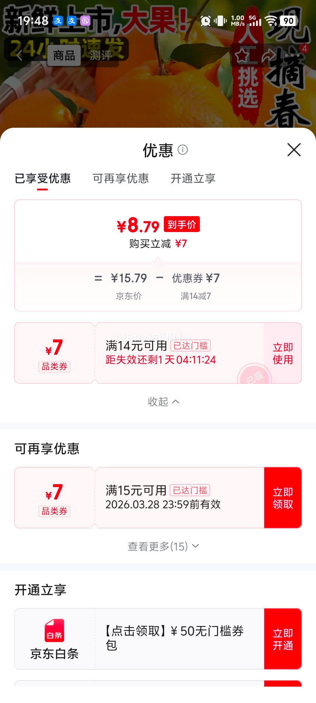 得5元微信立减金,每个地区不一样,安需参加